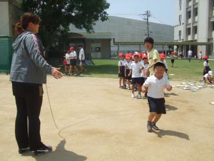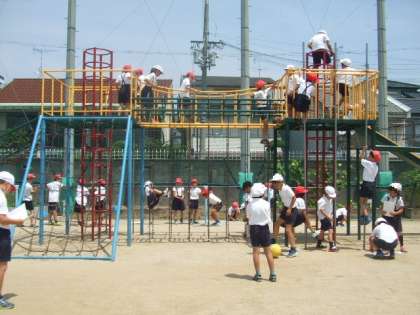 7月は、低学年(大縄・一輪車)、中学年(鉄棒・遊具)、高学年(竹馬・ボール)に取り組みます。