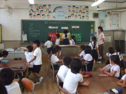 2年生の食育の授業では、三色食品群の分類やそれぞれの働きについて学習しました。
