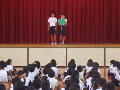 そして、3年生と5年生が1学期に頑張ったことの発表をしてくれました。どちらの学年も素晴らしかったです。