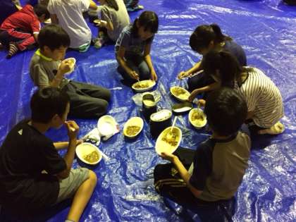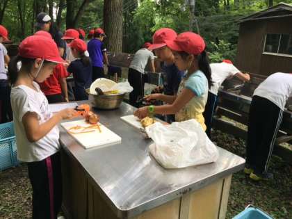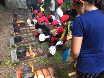 待ちに待った飯ごう炊さんでしたが、途中で雨が降って来て中断しました。