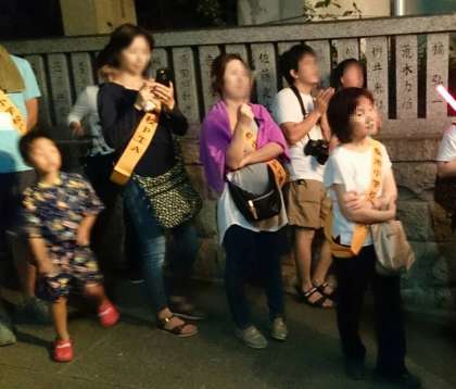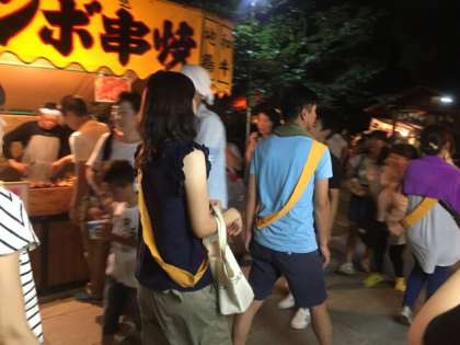 賑やかなお祭りの中をまわったあと、二手に分かれて校区内を歩きました。