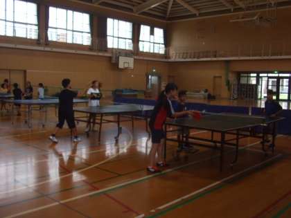 熱心に練習しています。PTAの卓球部の方も応援にきていただいています。