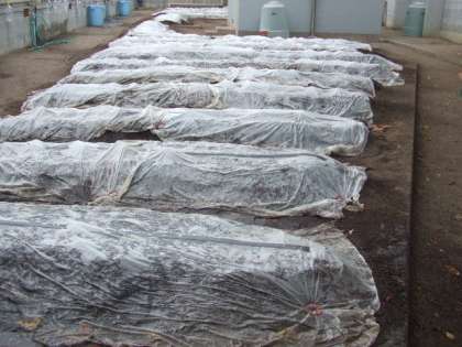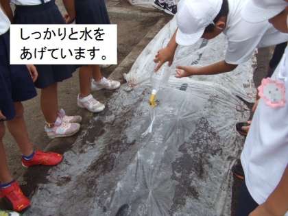 種を植えるとその上に不織布をかけました。これは、○水をかけても種が流されない、○鳥に種を食べられない、○保湿効果などの目的があります。最後にたっぷりと水をあげました。しばらくの間は、毎日の水やりがとても大切です。