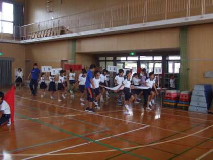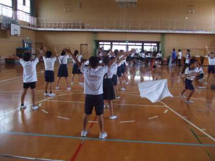 応援団は、忙しい毎日ですが、15分休憩と昼休みに体育館で大きな声を出しています。役割も決まりだんだん熱がこもってきています。