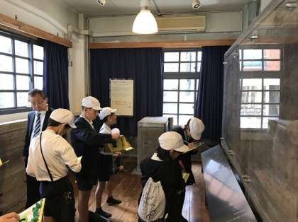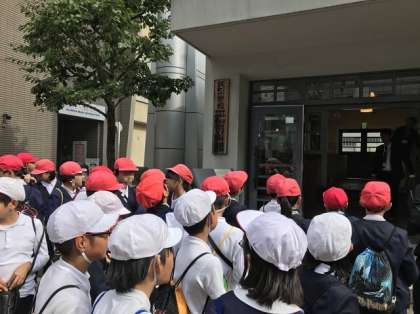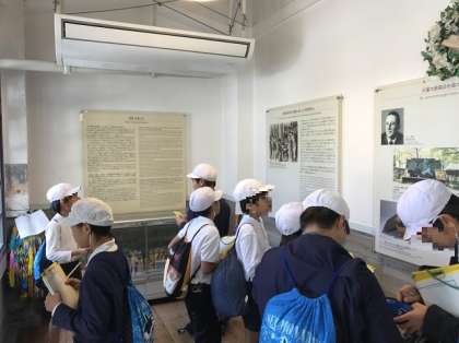 袋町小学校で平和資料館を見学しています。