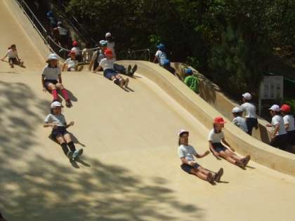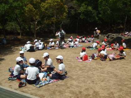 今年は、天候のせいか、「河内の里」は、あお虫やしゃくとり虫がいっぱいで、元気な3・4年生も、キャーキャーワーワー。「やんちゃの里」では、いろいろな遊具を楽しみました。