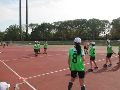 午前中は、ヤンマーフィールドでサッカー・ドッジボール・大なわの種目を、グループでローテーションしながら取り組みました。天気も良くみんな楽しく活動していました。