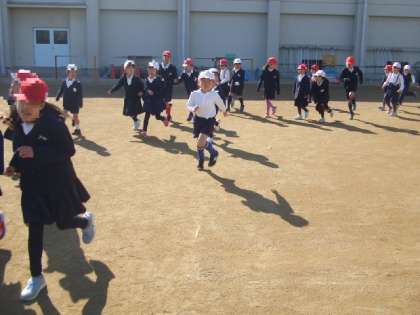 大変寒い日が続いています。寒い日が続くと運動場へ出る機会が少なくなり、運動量が落ちがちになります。この時期に自主的に体力を高めるとともに、すすんで運動することに親しむことを目的に「かけ足週間」をしています。全員で走ると混み合うので、15分休憩に低学年、昼休みに高学年が自分のペースで走るようにしています。