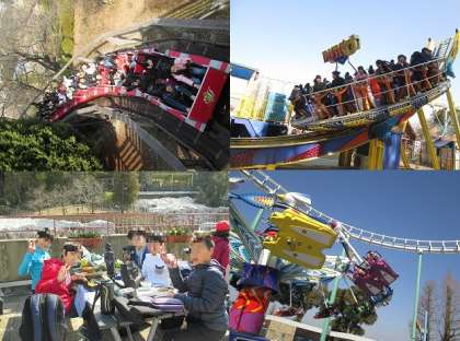 ずっと寒い日が続いていましたが、この日は暖かな天候になりました。アトラクションはどこも待ち時間が短く、みんな思いっきり楽しむことが出きたようでした。寒さが心配だったお昼御飯も、外で楽しく食べることができました。