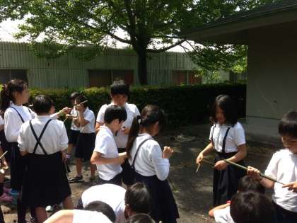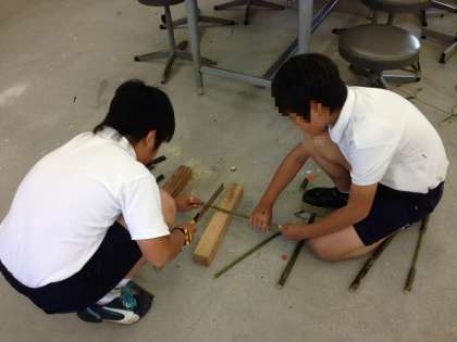 3日目の朝は竹細工。なんと竹細工専門の講師の先生がご自身で竹を人数分手に入れ、無料で材料を用意してくださっての体験活動です。こういうのが大好きな6年生。夢中になって取り組んだようで、とてもうれしそうな表情。
