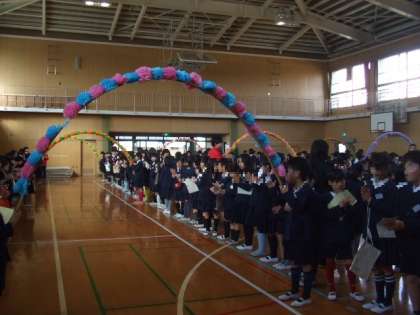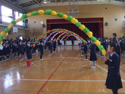 28日の児童集会で3月7日に行われる「卒業を祝う会」の練習をしました。5年生4年生の代表委員が中心となってすすめました。