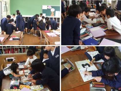次に自分たちの旗をつくりました。低学年の人も絵を描いたり色を塗ったりして、みんなで協力して取り組んでいました。