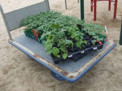 2年生は、生活科の学習でミニトマトを育てます。今日は、全員でミニトマトの苗を鉢に植えました。たくさん実がなるように頑張って育てていきます。