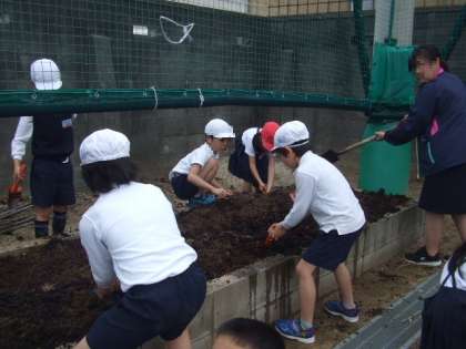 また、学習園にサツマイモを植えるので、みんなで土づくりもしました。