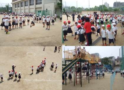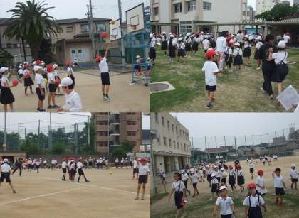 5月は、低学年(鉄棒・竹馬)、中学年(大縄・一輪車)、高学年(ボール・遊具)に取り組みました。暑い日が多かったので、水分を上手に取りながら組んでいました。