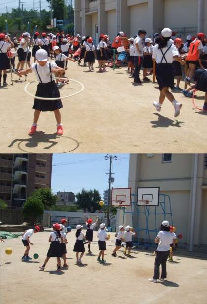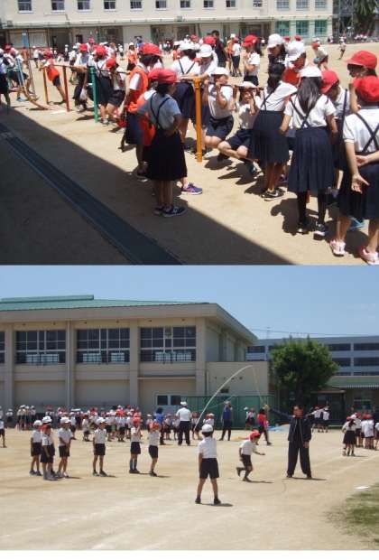 6月は、低学年(大縄・一輪車)、中学年(ボール・遊具)、高学年(鉄棒・竹馬)に取り組みます。
