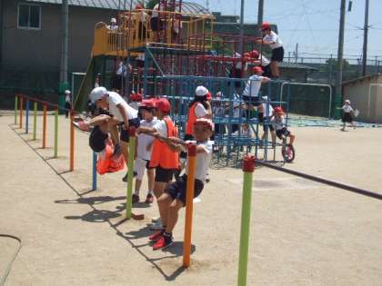今週はナガリンピック週間で、子どもたちはきれいになった鉄棒で元気に練習をしていましいた。