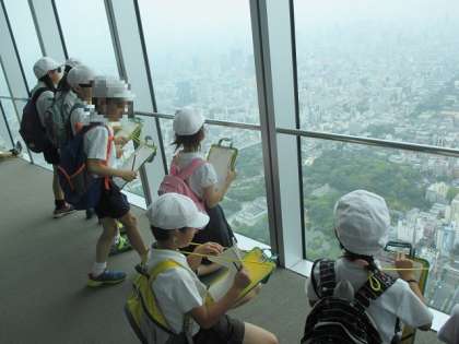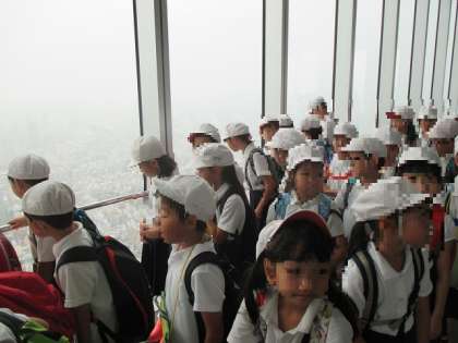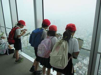 8日(金)3年生が社会科の学習で「あべのハルカス」に行きました。行く前から子どもたちはワクワクドキドキしていました。まず、エレベーターの速さに驚かされていました。あっという間に展望台へつきました。