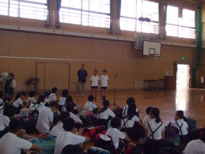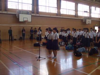楽しみにしていた自然体験学習! 出発式の様子です。
