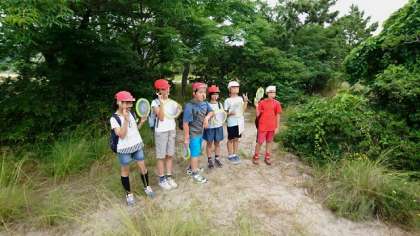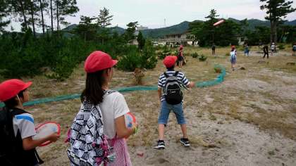ディスクゴルフです。グループでコースを回り得点を競います。初めてする子も少しずつ慣れてきて最後はミラクルショットを出して盛り上がりました。