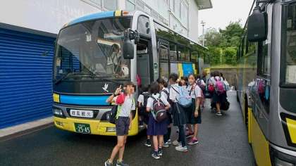 閉舎式が終わりました。宿舎での活動は、すべて無事終了です。これからバスに乗って出発します!!