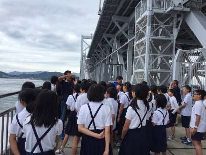 バスを降りると、雨は止んでいました。鳴門大橋が目の前に見えます。