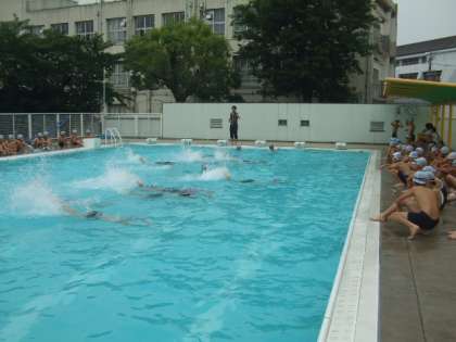 17日(火)4・5・6年生の水泳学習が始まりました。朝からくもり空でしたが、子どもたちはみんなワクワクしている様子でした。1年ぶりのプールでしたが、水なれをした後、子どもたちは水しぶきをあげながら学習に取り組んでいました。明日は、1〜3年の水泳学習が始まります。お天気が気になりますが、楽しみです。