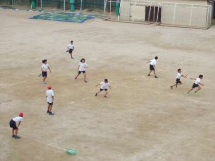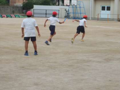 それにむけて、陸上に参加する子どもたちが放課後に練習を始めていました。リレーのバトンパスの練習をグループでしていました。