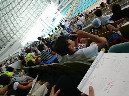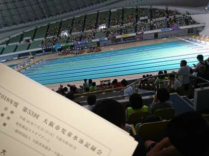 大阪市児童水泳記録会が東和薬品ラクタブドーム(門真スポーツセンター)で行われています。勝ち負けとは関係なく、50mの自分の記録に挑戦します。