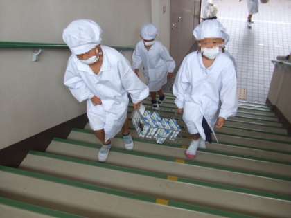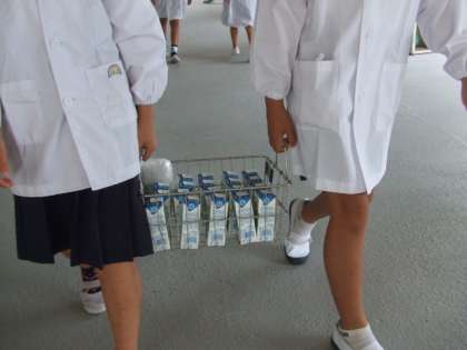 今日から、びんから紙パックの牛乳にかわりました。牛乳の給食当番は、「軽い」と言って嬉しそうに運んでいました。飲み残しも少なく、よく飲んでいました。