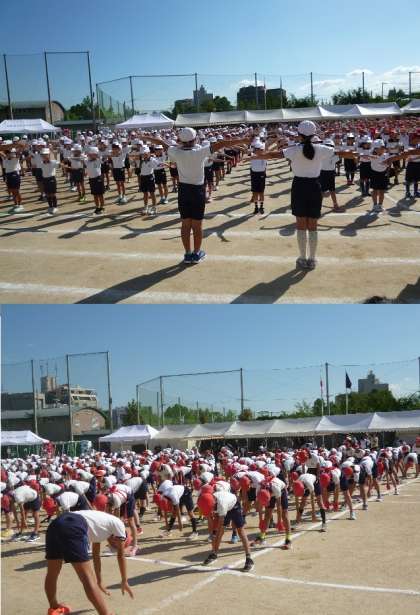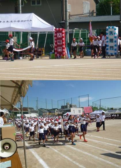 台風の影響で延期となりましたが、2日に秋晴れの空のもと、30年度の運動会を行うことができました。どの学年も元気に入場行進をしていました。