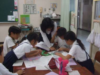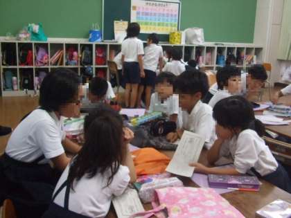 12日、大泉緑地へのふれあい遠足を予定しています。雨の日が続いていますが、12日は晴れの予報です。グループで班のめあてやオリエンテーリングのまわる順番・班の遊びなどについて話し合いました。