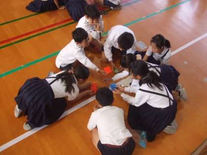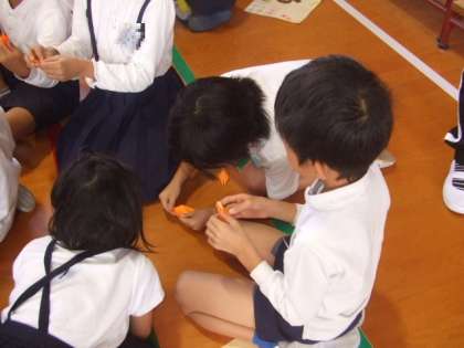 その後、班ごとに6年生に教えてもらいながら一つ一つていねいに折っていました。