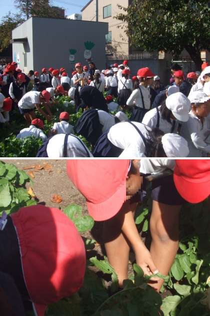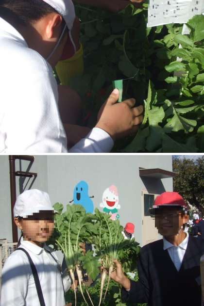 今日は、まだ間引きをしていなかった大根を1本にしました。思っていたよりも根の部分が大きくなっていてビックリしていた人もいました。
