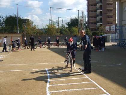 高学年は、自転車の乗り方を学習しました。車の近くを通るときや横断歩道の通り方・すれ違う時の注意など教えていただきました。