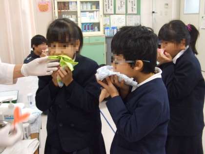 その後、保健室に移動して、歯科校医の先生にフッ化物塗布をしていただきました。あわあわのフッ化物はグレープ味でした。30分間は「食べ・飲み・うがい」は禁止です。