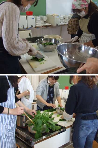 「第18回ナッケ田辺大根まつり」の朝、PTAの役員・スポットスタッフのみなさんが、午後にみんなでいただくお味噌汁の準備をしてくださいました。大根をきれいに洗ってから、家庭科室で手際よく切り、下茹でまでしてくださいました。みんながとても楽しみにしている活動です。ありがとうございます。