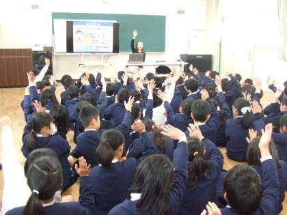 ドコモの方にゲストティーチャーとして来ていただいて、5年生・6年生を対象にスマホ・携帯安全教室がありました。