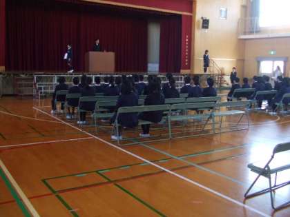 3月20日(水)の卒業式に向けて、卒業式の練習が始まっています。入退場の仕方・卒業証書授与・起立・礼の動作はキビキビとしています。