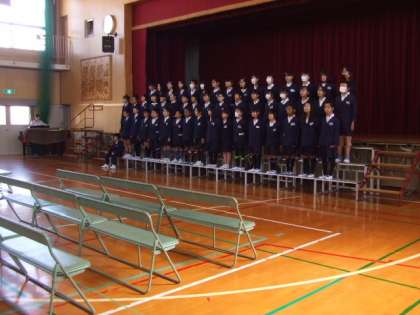 「別れの言葉」では、大きな声で「よびかけ」をしています。そして、澄んだ歌声が体育館に響いています。