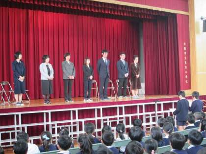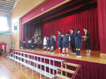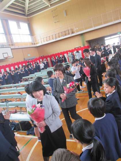 22日(金)に3月31日付けで長池小学校を離任される7名の教職員の方との「お別れの会」がありました。卒業生や保護者の方々も参加していただきました。校長先生から離転任される教職員の紹介後、児童代表がお別れのあいさつをしました。そして、お一人ずつお別れの言葉があり、最後にみんなの間を通って退場されました。