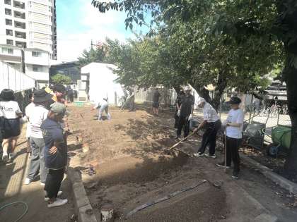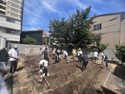 2学期に全校児童で大根を育てるために、畝づくりを行いました。研修で教えていただいたことを活かしながら、雑草や石を取り除き、肥料を混ぜ、教職員、保護者の皆様、地域の皆様と力を合わせて畝をつくりました。