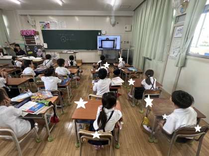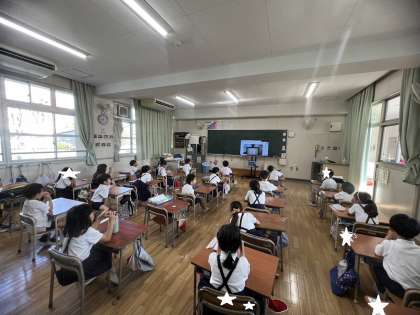 朝からかなり暑かったので、リモートで児童集会をしました。