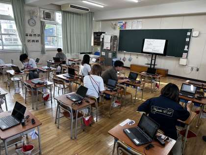 今年度、1年生にはまだ一人一台端末の配付がされていませんでしたが、やっと届きました。今日は、職員でその設定やファーストログオンの作業を行いました。