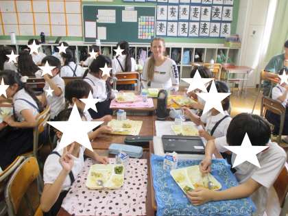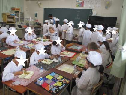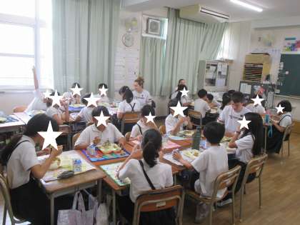 給食を一緒に食べました。