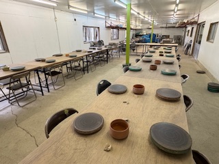 何人か車酔いの子どもが出ましたが、これから全員で陶芸体験を行います。