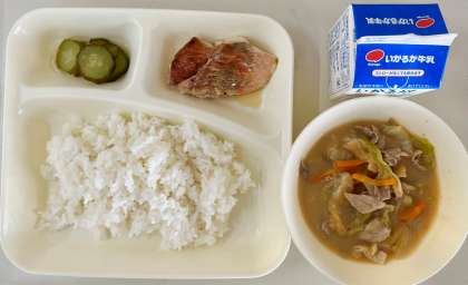 ☆今日の給食では「あかうおのしょうゆだれかけ」として出ています。