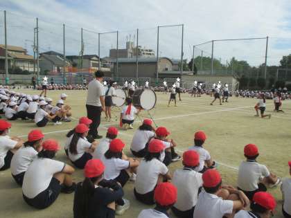 運動会に向けた全体練習の2回目が運動場で行われました。