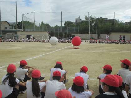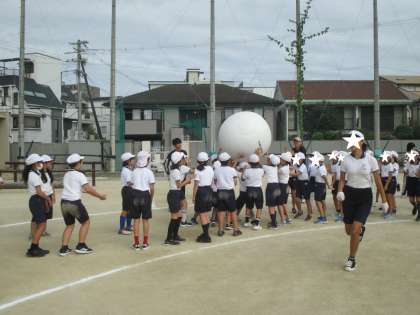 続いて、今年初のチャレンジとなる全校児童による『大玉転がし』の練習。実際に転がしてみると、予想以上に難しく、でもみんなの笑顔があふれる楽しい時間となりました。