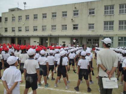 最後は閉会式の練習。今年から新たに加わった得点発表や優勝旗・準優勝旗の授与も行い、運動会本番に向けての準備が着々と進んでいます。